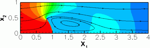 In this example we consider the flow in a 2D channel which is partially obstructed by an elastic leaflet – the FSI generalisation of the Navier-Stokes problem in which the motion of the leaflet is prescribed. A particular feature of this problem is that the leaflet (modelled as a thin-walled beam structure) is totally immersed in the fluid and is therefore exposed to the fluid traction from both sides.