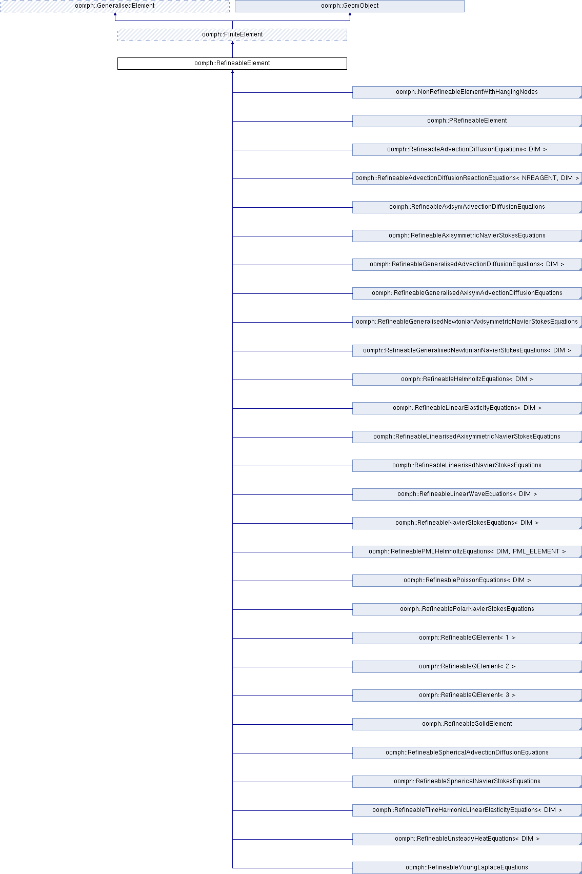 Inheritance diagram for oomph::RefineableElement:Public Member Functions | |